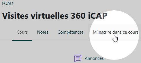 - Soit dans le cours, cliquez sur l'onglet "M'inscrire dans ce cours" :