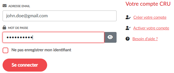 - Authentifiez-vous sur le site permettant de gérer votre compte CRU ;