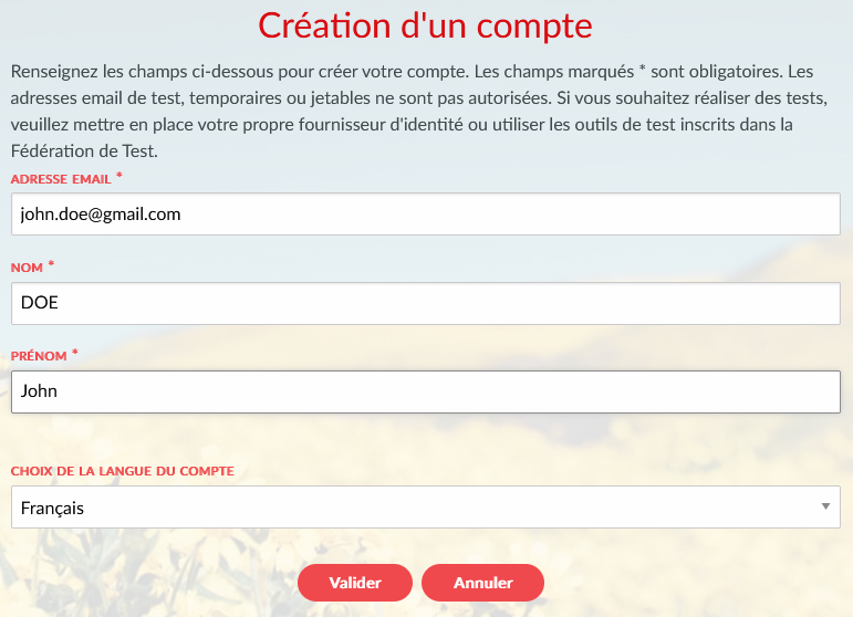- Remplir le formulaire de création de compte ;