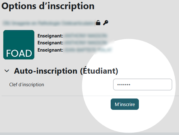 - Soit vous pourrez la saisir au bas de cette page d'accès du cours.